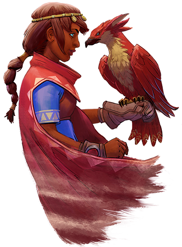 The game starts on a dying colony planet with its culture destroyed, resources depleted, and turned into a desert by machine invaders. Ara’s been wrongfully thrown in jail for a minor infraction. While she awaits her fate in a lonely cell, she passes the time by befriending a young falcon. Together they escape and set off on an adventure to help the resistance reclaim their freedom and drive off the invaders.